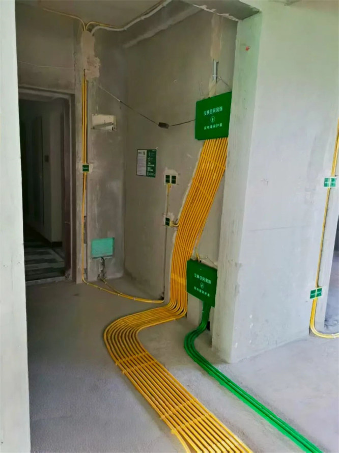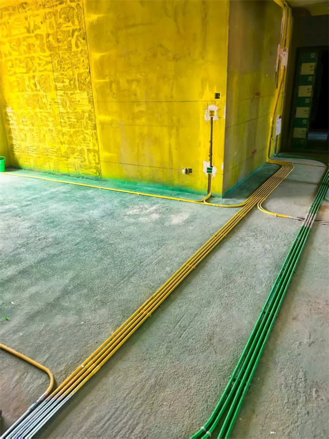 △強(qiáng)弱電線管交叉,強(qiáng)電黃色、弱電綠色不允許混用