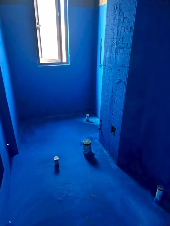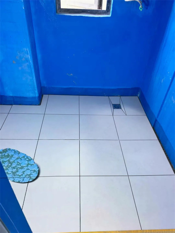 △衛(wèi)生間防水涂層均勻覆蓋在地面,施工無漏刷破損。
