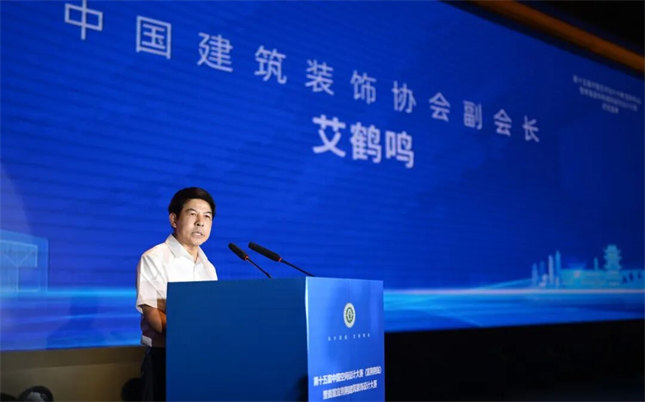 ▲中國建筑裝飾協(xié)會副會長艾鶴鳴致辭