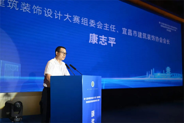 ▲設(shè)計大賽組委會主任、宜昌市建筑裝飾協(xié)會會長康志平講話